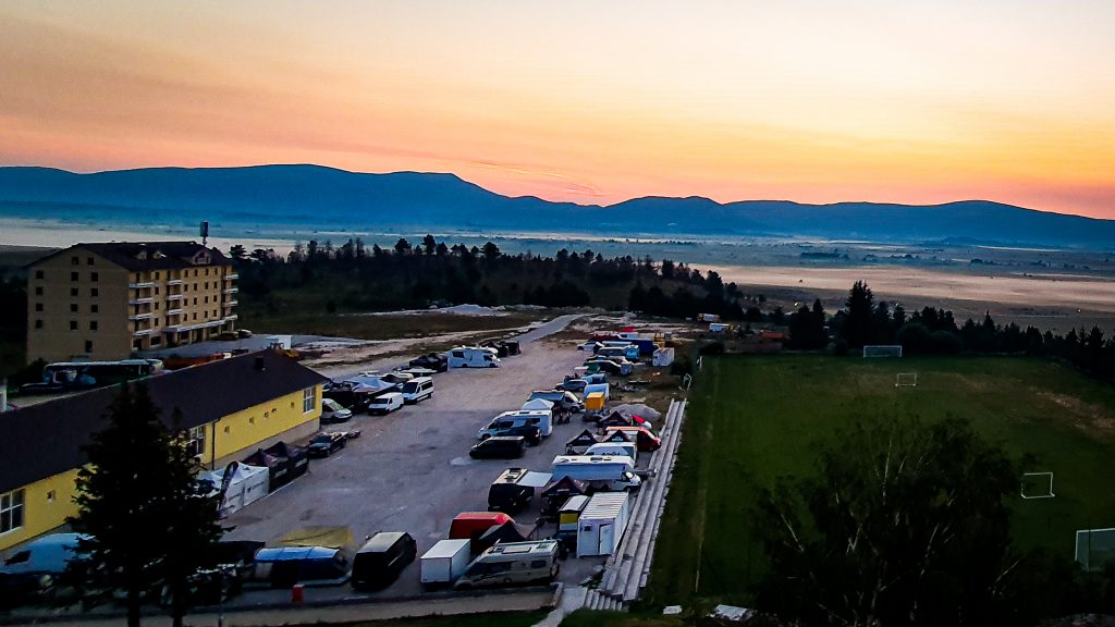 Das Roaming für mein Handy habe ich gleich mal abgestellt, da Bosnien ja nicht EU ist und der Datenverkehr immens teuer ist. In Livno wurde noch Bargeld getauscht und eine bosnische Daten-SIM geholt und dann gings die letzten 50 km ins Camp der Bosnia-Rally in der Nähe von Kupres.