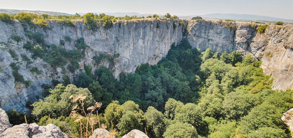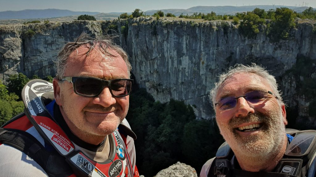 Auf staubigen Feldwegen und einer schwierigen Bergaufpassage, auf der Jan und ich unsere Mopeds hingelegt haben, fuhren wir bis zu einem gigantischen „Felsloch“ namens Veliki Samograd, wo wir einige Fotos geschossen haben.