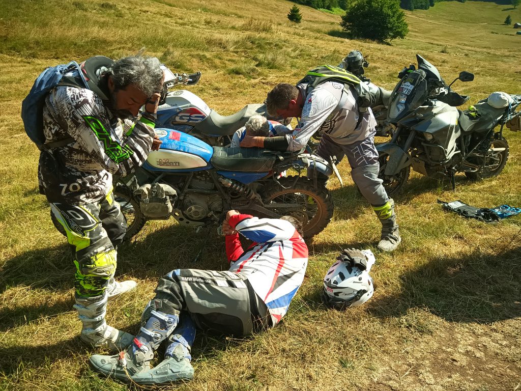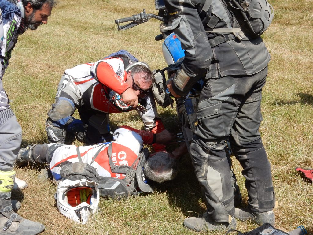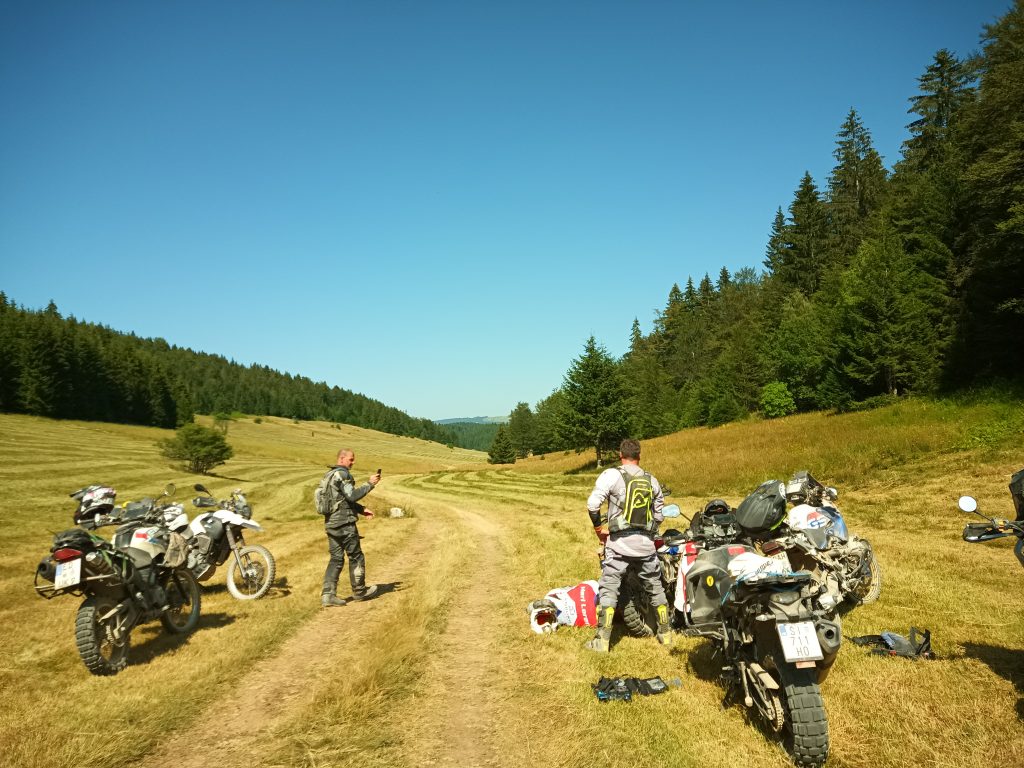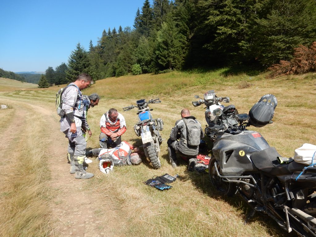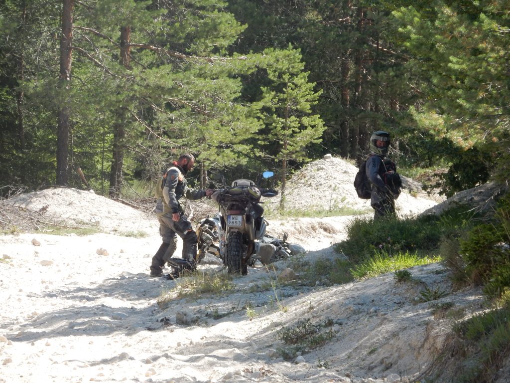 Stefan, der sich auch heute wieder unserer Gruppe angeschlossen hatte, hat sich leider mit seiner schweren KTM hingelegt und hat seiner Gesundheit zuliebe daraufhin den Offroad-Teil abgebrochen. Manchmal ist es besser, wenn man auf seinen inneren Schweinehund hört und nicht jede Herausforderung annimmt.