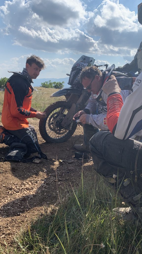 Tag 2 im Rallymodus. Am Vorabend wurden noch die kleinen Reparaturarbeiten erledigt und Markus hat sein Ritzel an der Ducati wieder fixiert, so dass alles wieder perfekt war.