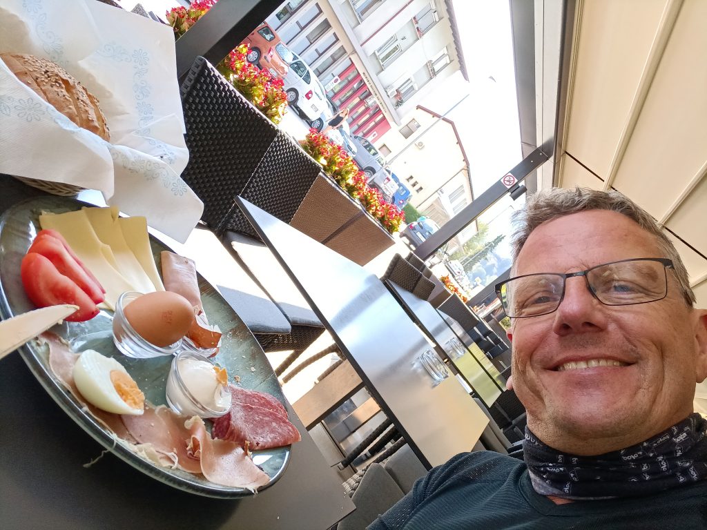 Nach den desolaten Frühstückserfahrungen der „Männer-WG“ in Bosnien habe ich mich im Hotel an ein wunderbares Frühstücksbuffet gesetzt und habe mir wirklich den Magen vollgeschlagen.