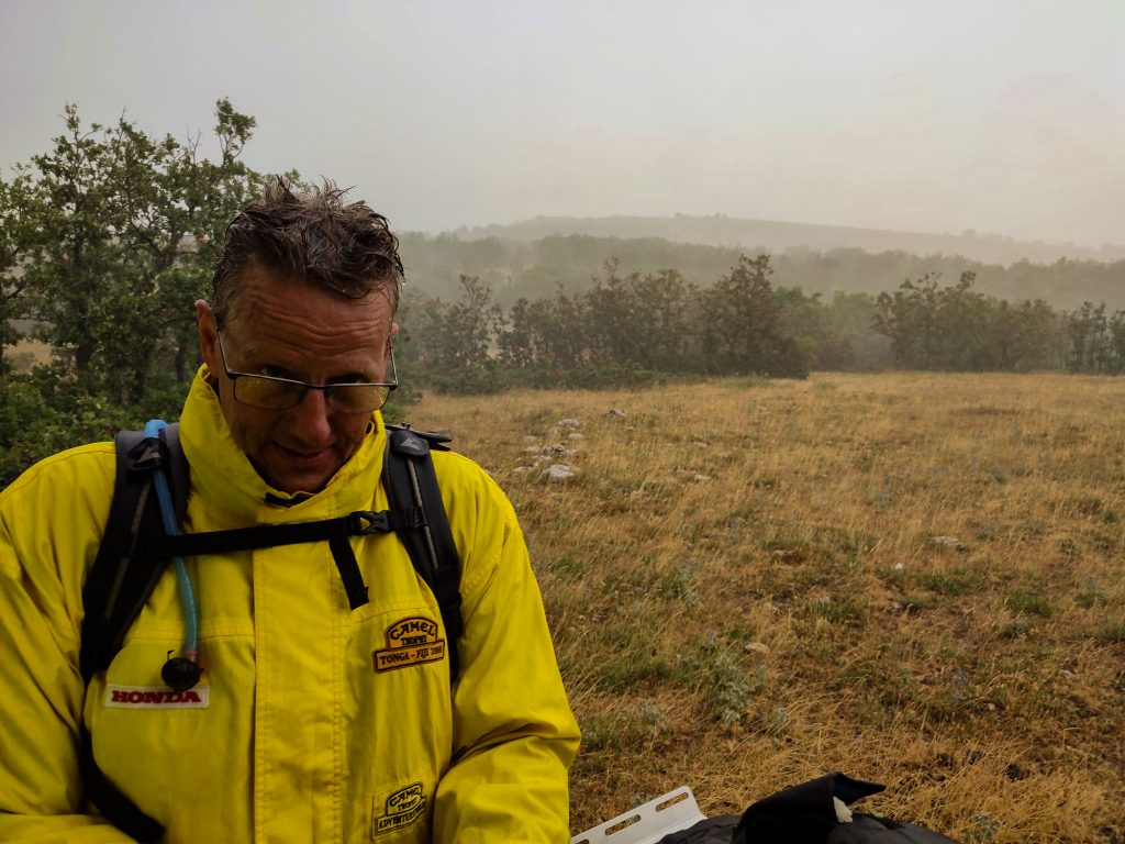 Jan´s Eisenschwein wollte nicht mehr. Elektrik, Anlasser oder irgend so etwas war ausgefallen. Und wie immer es so ist: Just in diesem Moment hat uns ein fettes Gewitter eingeholt.