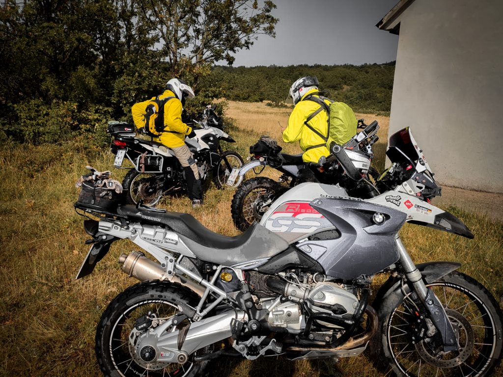 Hier kam wieder das bewährte Reparaturteam zum Einsatz. Eine Mischung aus Mc Gyver, Spocky und Wunderheiler nahm sich dem Eisenschwein (BMW GS 1150) an und bald wurde festgestellt, dass eine Lötstelle in der Schaltereinheit gebrochen war. Gerade noch rechtzeitig vor einem extremen Gewitterguß wurde die Lötstelle provisorisch fixiert und wir konnten das Unwetter in einer Art Schutzraum absitzen.