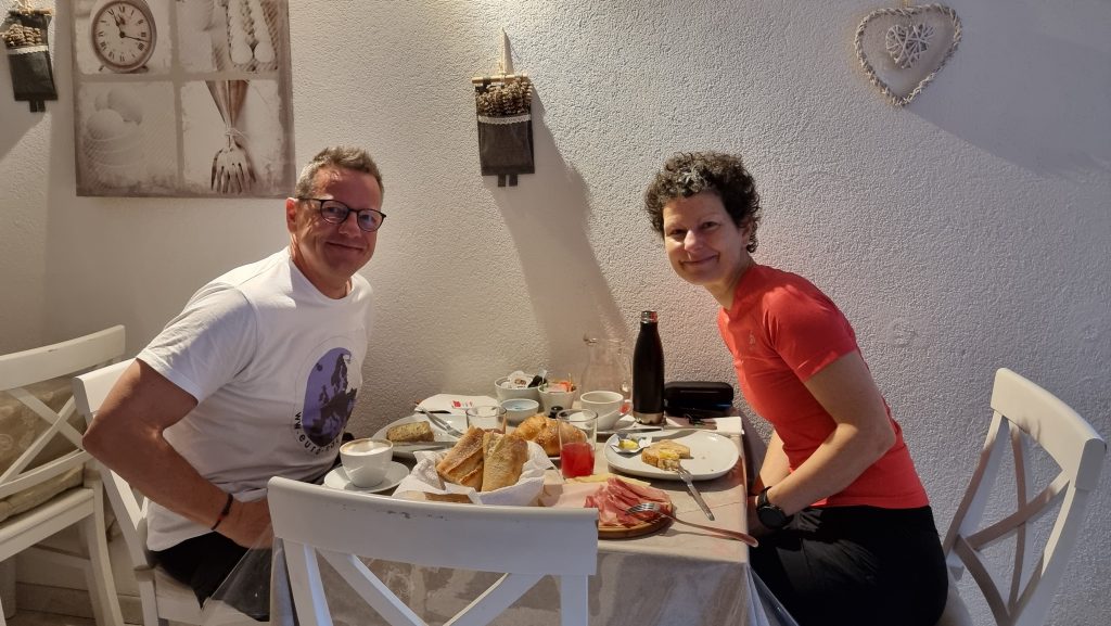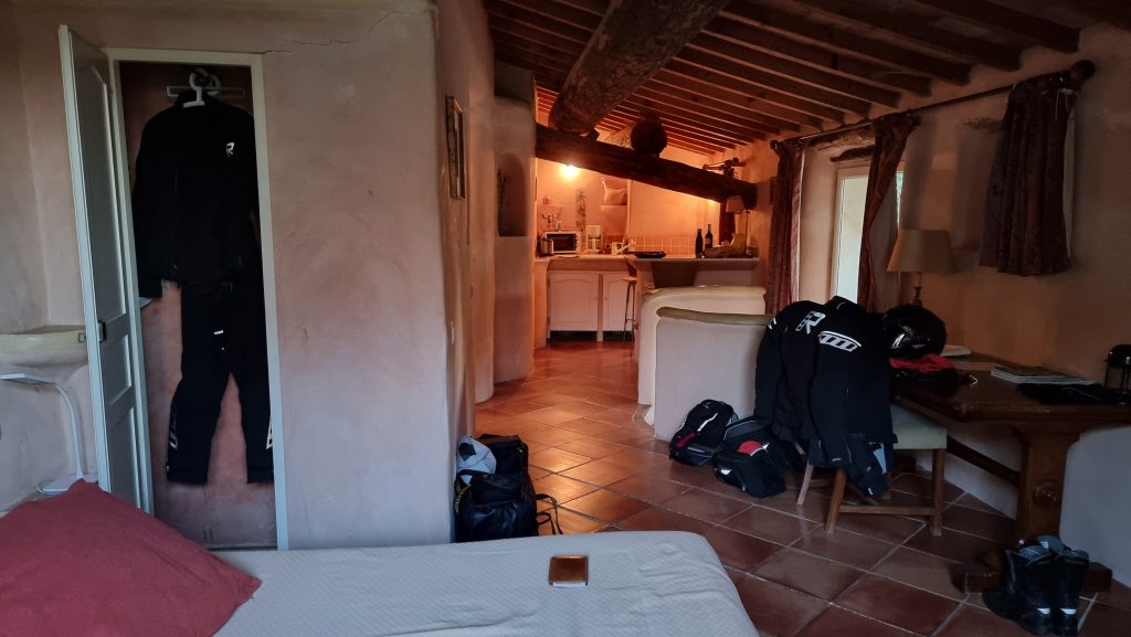 Mittags war es dann genug, zumal wir mit dieser Kurvenkurbelei nicht viel Strecke machen konnten. Am Ende des Tages waren gerade einmal knapp 200 km auf der Uhr 🥵 und endete in Varages, südwestlich des Lac de Sainte – Croix (Gorge du Verdon), in einem entzückenden B&B ohne W-Lan und sonstiger Erreichbarkeit, dafür mit den besten Croissants der Gegend!!!