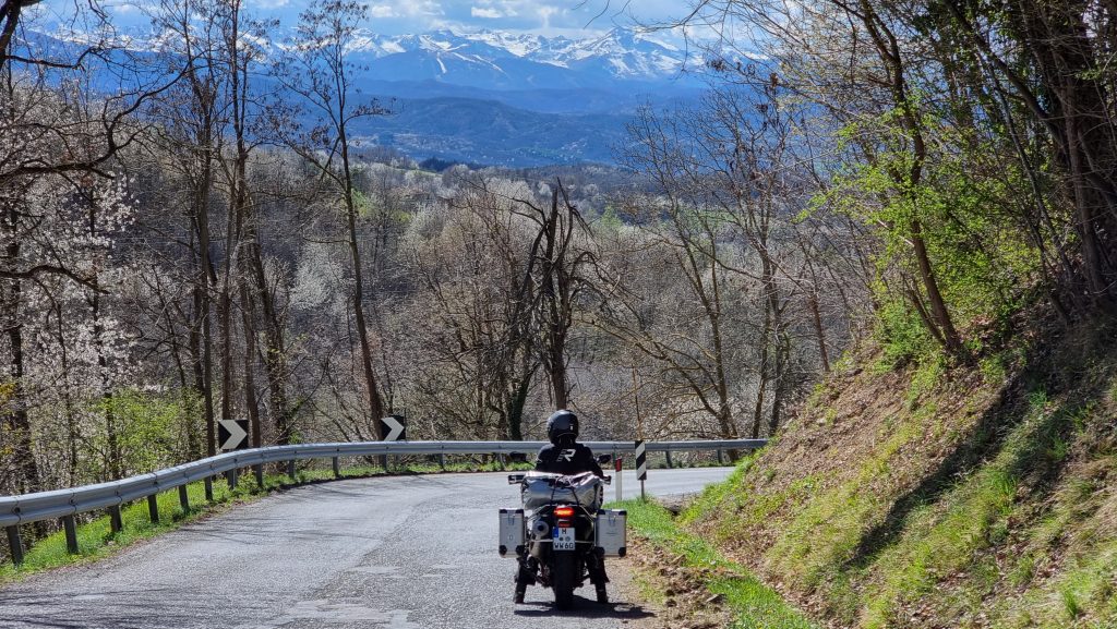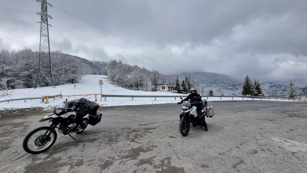 Da wir uns in den piemonteser Bergen befanden und das Unwetter oberhalb von 1100 Metern weiße Spuren hinterlassen hat, verlief unsere Route über ein paar Pässe, die frisch eingeschneit waren.
