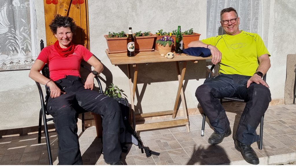 Danach sind Hausaufgaben angesagt: Technischer Dienst an den Motorrädern, Wäsche waschen, etwas Sport, und dann natürlich wieder Ausruhen und lesen und den nächsten Tag vorbereiten und die besten Campingplätze ausspähen, und, und, und….
