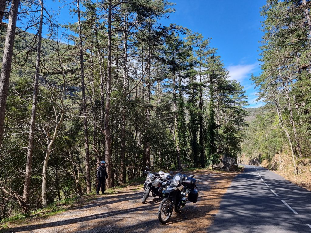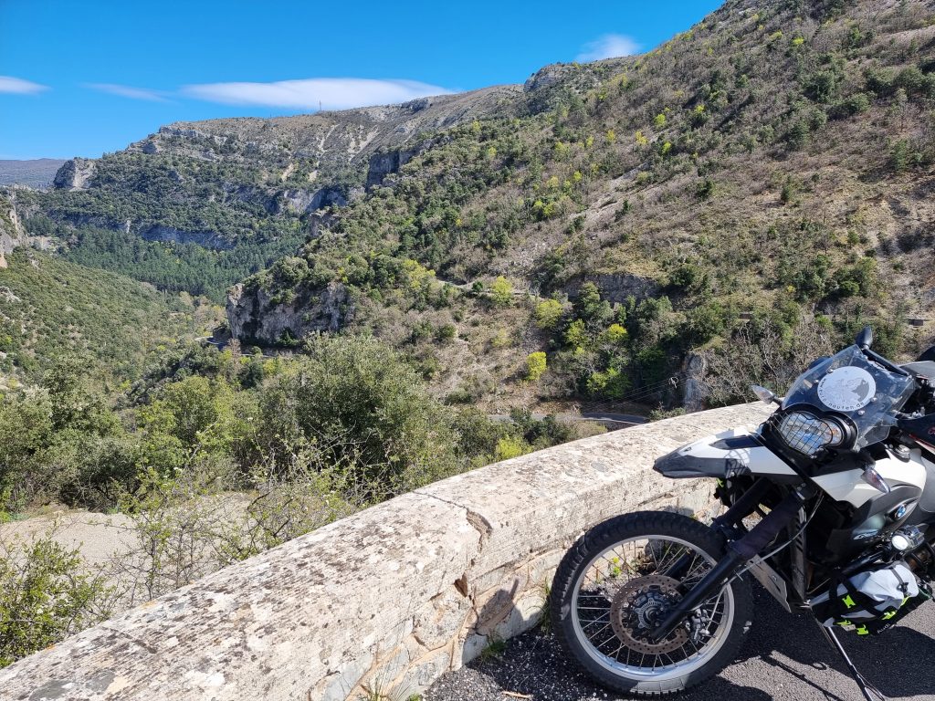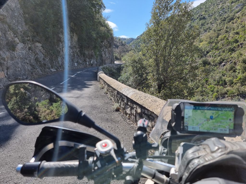 Unsere Strecke führte uns wegen einer Streckensperrung durch ein wunderschönes Tal auf der „Route de Gornies“ an dem Fluß Vis entlang. Atemberaubend! Dauern mussten wir anhalten, um die Eindrücke digital speichern zu können…
