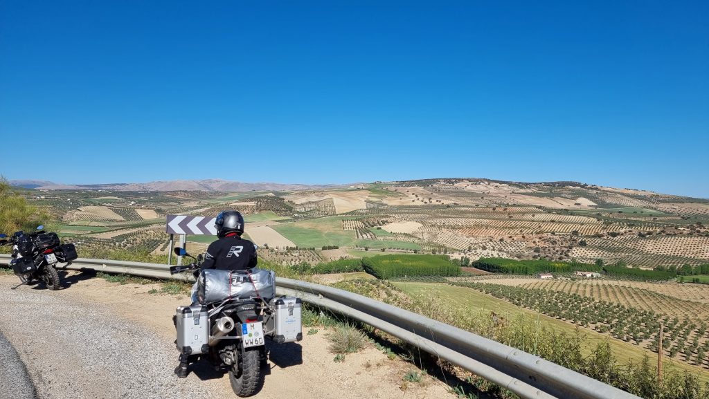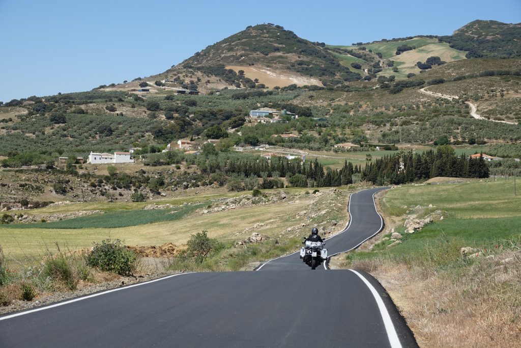 Der Morgenkaffee fällt aus, weil wir möglichst rasch in Algeciras sein wollen, von wo aus uns eine Fähre auf den afrikanischen Kontinent übersetzen soll. Nach schnellem Einpacken des Campingequipments sitzen wir um 08:15 Uhr im Sattel und starten in einen glasklaren, aber noch recht kalten Morgen. Bei 8 Grad geht es gut 100 km über schöne zügige Bergstrecken Richtung Gibraltar.
