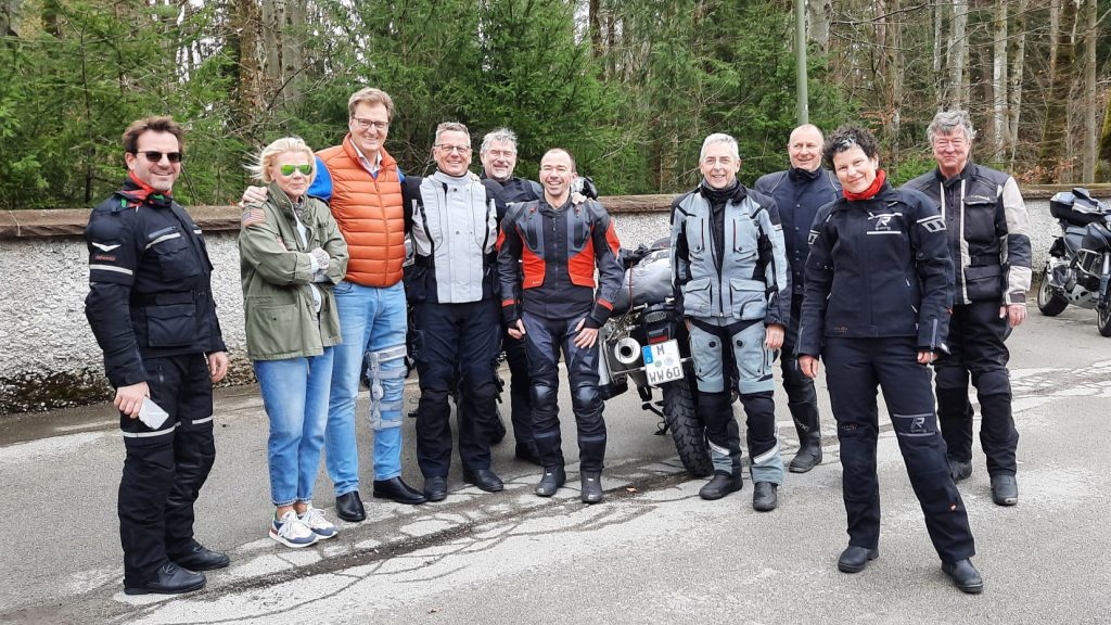 Am Startpunkt selbst erwarteten uns 7! unerschrockene Motorradfreunde aus unserer Motorradgruppe, die uns trotz der etwas widrigen Temperaturen die ersten Kilometer über den Kesselberg bis zum Abzweig in die Jachenau eskortierten.
