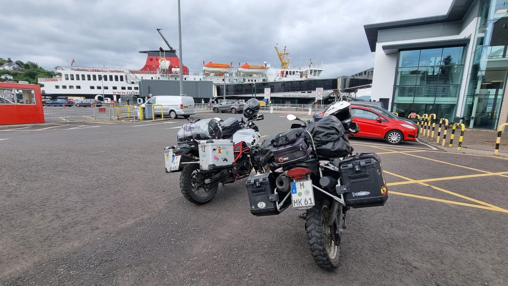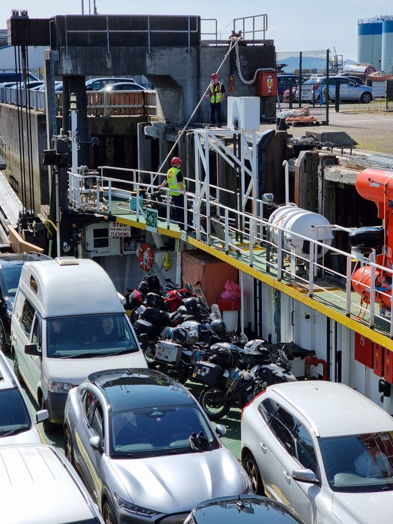 Die Fähre am 04.07.23 haben wir schon frühzeitig von Irland aus gebucht, um nicht in die Verlegenheit zu kommen, keinen Platz mehr zu bekommen. Eigentlich ist es kein Problem, auf einer Fähre mit dem Motorrad unterzukommen. Allerdings kenne ich es auch nicht, dass man ein Schlafkabine dazubuchen muss und dadurch die Plätze natürlich begrenzt sind. Früher hatte man auch ohne Vorbuchung immer einen Deckplatz oder Schlafsessel erhalten. So ändern sich die Zeiten… 🤷♂️
