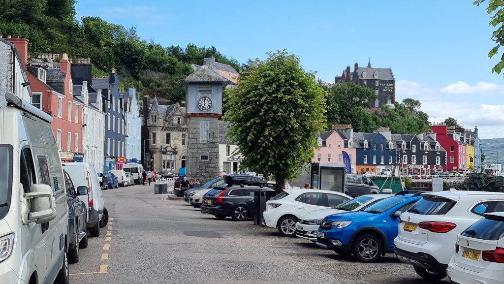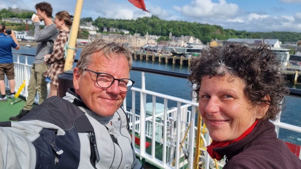 Nach etwa 100 Kilometern waren wir wieder an der nächsten Fähre, die uns ans Festland bringen sollte. Nach einer Pause und Einkauf im pittoresken Dorf Tobermory lieferte uns eine Fähre mit ganzen 14 Stellplätzen wieder sicher in Kilchoan ab.