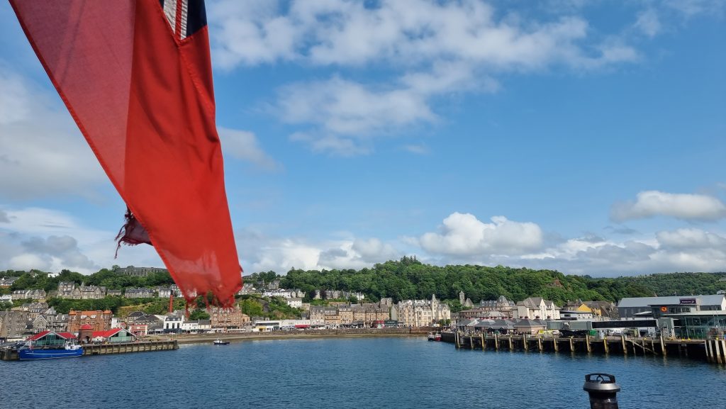 Wir wußten, dass die Fähre nach „Skye“ um 16:00 Uhr ablegte und waren pünktlich eine knappe Stunde vorher dort. Arlett wollte die Tickets besorgen und kam enttäuscht aus dem Office, weil die Fähre ausgebucht war. Nach kurzem Kriegsrat blieb uns wohl nichts anderes übrig, als die nächste Fähre zu buchen… 🤷♂️