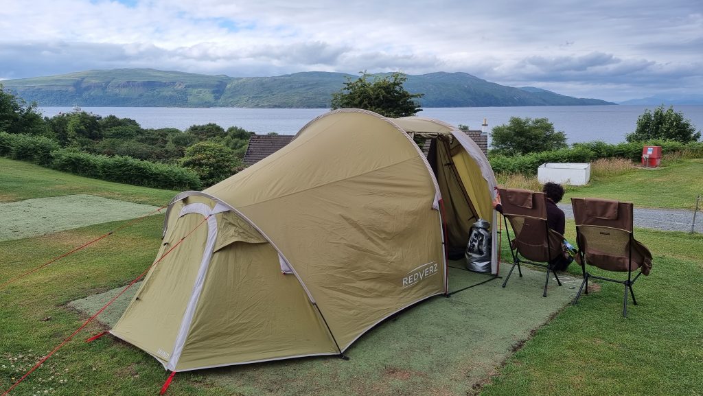 Die Isle of Mull begrüßte uns mit wilden Wolkenbändern und einem netten Campingplatz, auf dem wir unser Zelt aufgeschlagen haben. Ein Topf Nudeln mit Gemüse, Pilzen, Brokkoli und viel Spaß verkürzte die kürzeste Nacht des Jahres. Hier Sonnenaufgang gegen 4 Uhr in der Früh und Sonnenuntergang ca. 23:30 Uhr. 😎