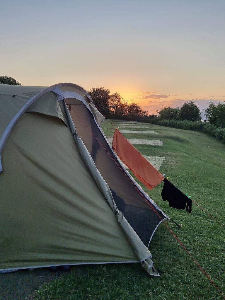 Regen war schon ab 10 Uhr für heute angekündigt. Um ein trockenes Zelt einpacken zu können, sind wir kurz nach 7 aufgestanden und haben die letzten drei Tage Zeltbehausung wieder in ein ordentliches Packmaß verwandelt. 💪🫣