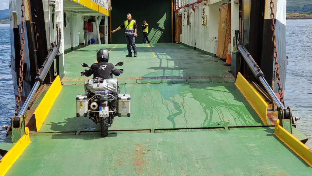 Eine landschaftlich sehr schöne Strecke wurde durch Benzinsorgen etwas unentspannt. Meine BMW G 650 GS Sertao hat eben nur einen 14 Liter Tank, der gerade mal für maximal 400 km reicht. Auf jeden Fall erreichten wir schließlich doch noch ohne Hilfestellung eine Tanke und kurz darauf die Fähre auf die Isle of Mull.