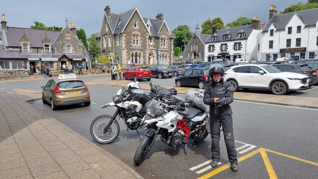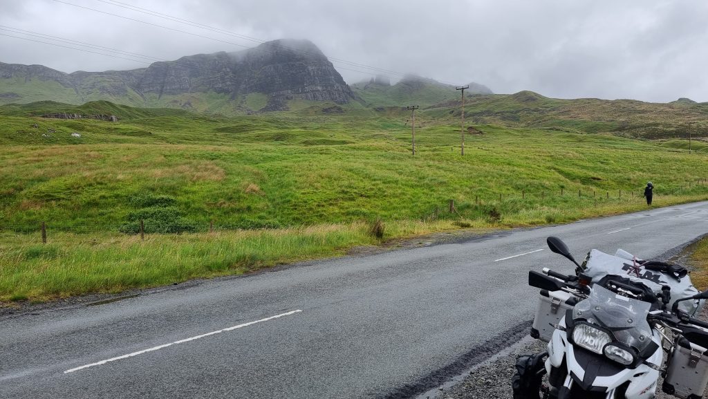 Gegen 10 Uhr war die Morgenroutine des Zusammenpackens abgewickelt und wir saßen im Sattel, um die Insel zu umrunden. Motorrad, Gepäck und Fahrer wurden auf Regen getrimmt und dann genossen wir Schottland bei Regen. Soll es ja geben, munkelt man…
