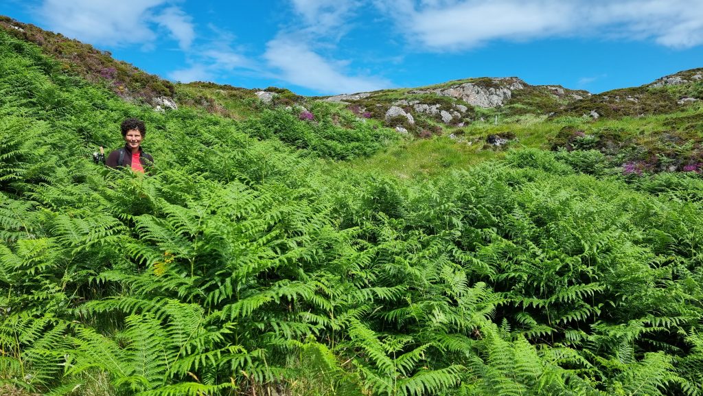 Wir starteten direkt vom Campingplatz in Treckinghose und kurzem Shirt und stiegen auf in Richtung Mount Mallone. Anfangs begleiteten uns noch niedrige Bäume, hohes Strauchwerk und eine begrenzte Anzahl unserer lieben Freunde, den Midges.
