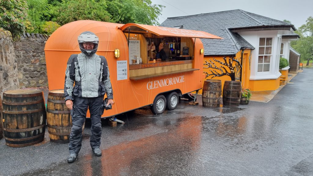 In der „Distillery Glenmorangie“ haben sie etwas betreten geschaut, als wir, noch die Helme auf dem Kopf, den Showroom betraten und unsere Pfützen hinterließen…