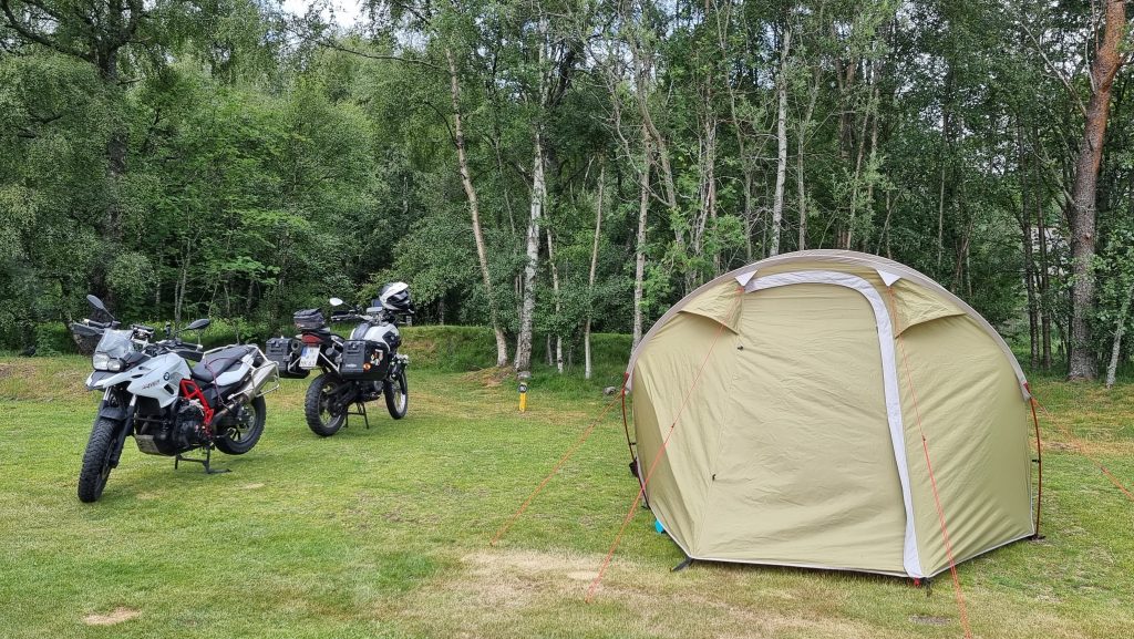 Durchmischte Strecken erwarteten uns auf dem Weg zu Loch Lomond. Auf den letzten Kilometern holte uns doch noch eine Regenwolke ein, die uns beim Aufbau des Zeltes begleitete.