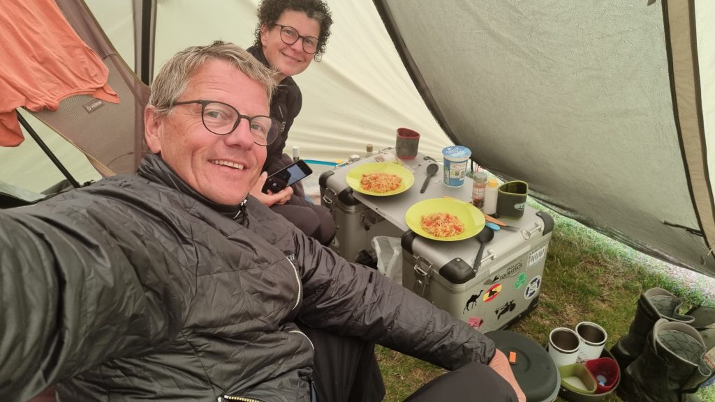 Wieder prasselte der Regen in der Früh auf unser Zelt. Aber heute ist keine Weiterfahrt angesagt und wir drehten uns genüsslich noch einige Male um. 😎