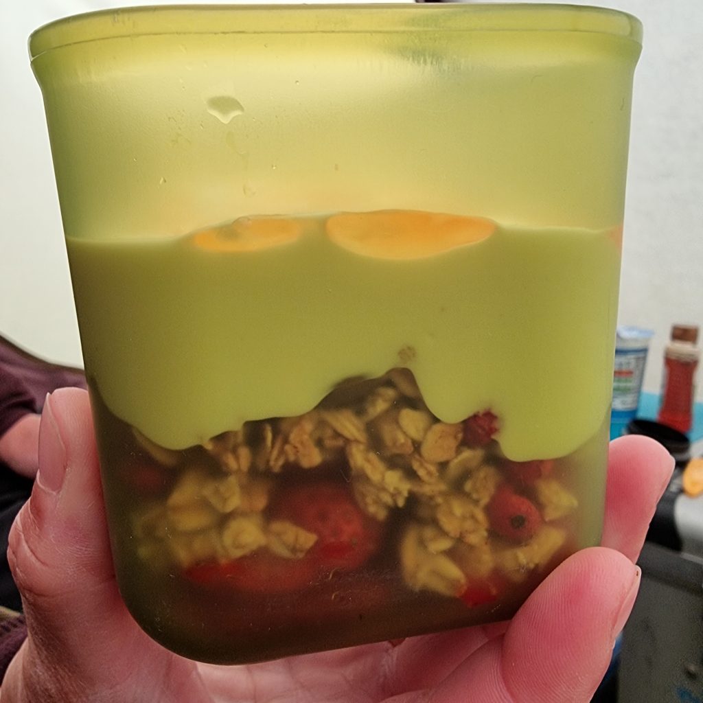 Die Konstellation der letzten Einkäufe ergab ein erstaunlich gutes Müsli in der Früh. Griechischer Joghurt, schottische Erdbeeren, etwas süßes Crunchy-Müsli aus der Tüte, das von mir noch mit Honig ergänzt wurde. 🤗 So kann ICH (ich kann hier nur für mich sprechen) sehr gut meinen Tag beginnen. 💪😎