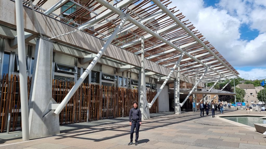 Wieder unten am House of Scottish Parliament angekommen, wunderten wir uns über die temporären Einzäunungen, die in der ganzen Stadt aufgebaut waren. Marathon? Radrennen? Papstbesuch?