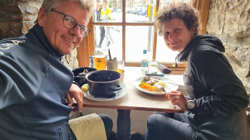 Statt die Brittania zu besuchen, haben wir das durch den Besuch eines netten Pubs ersetzt und haben uns dort ein frühes Abendessen schmecken lassen. Wohl das letzte in Schottland. 😥