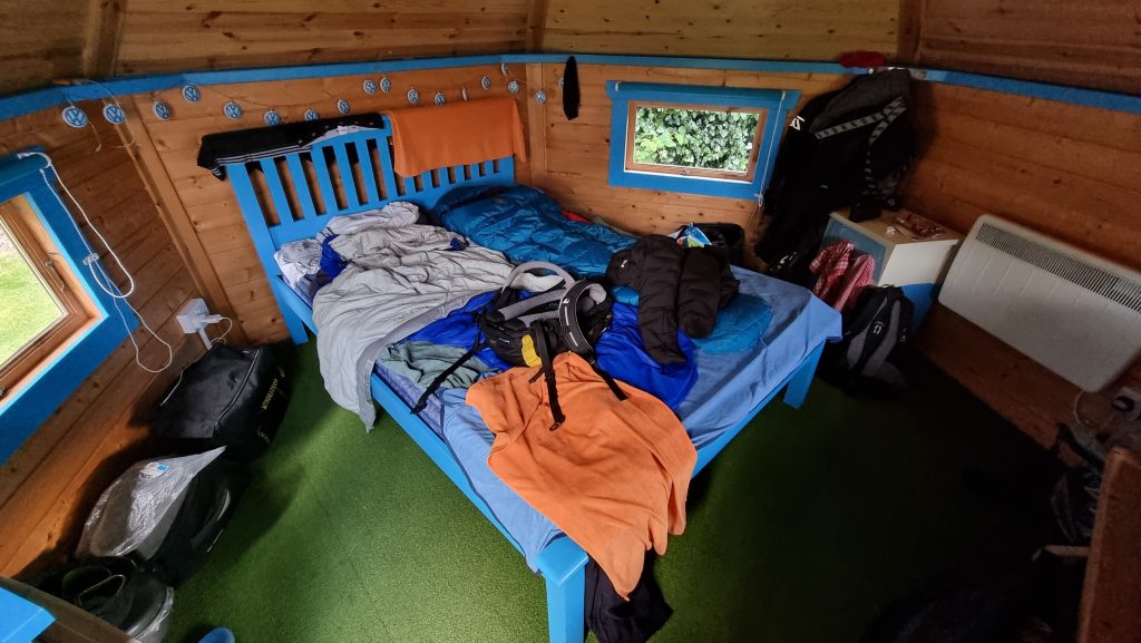 Vom Regen doch ganz schön eingesaut, verteilten wir die Klamotten zum Trocknen im Zelt und gingen ins Pub.
