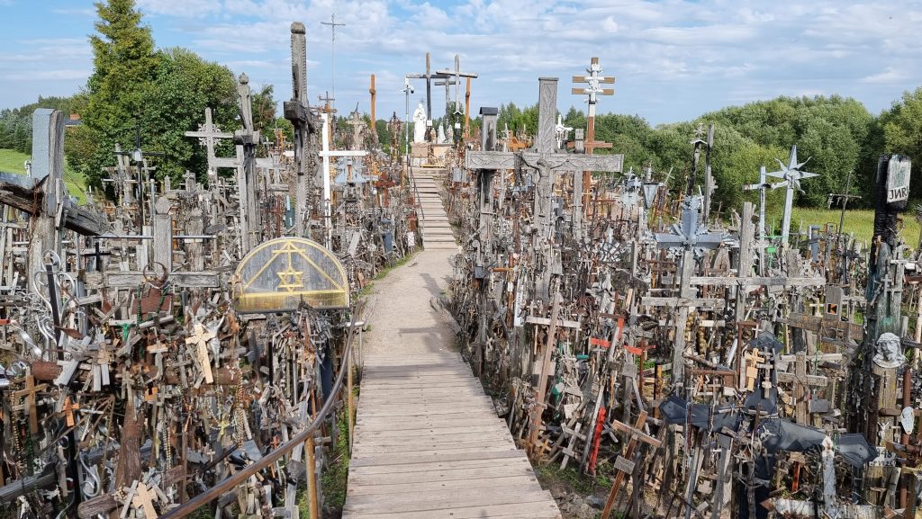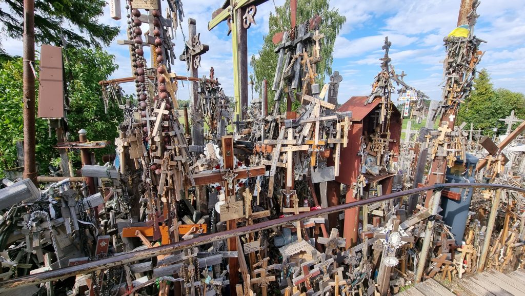 Kurz hinter der Grenze erwartete uns der unheimliche und magische Kreuzhügel. Ein Wallfahrtsort für Gläubige, die dort ihr Kreuz hinterlassen. Etwas spooky für uns und mit gemischten Gefühlen haben wir uns den Ort angesehen und sind dann aber auch bald wieder gefahren. Ganz geheuer war uns der Ort dann doch nicht. 👻👽🤖