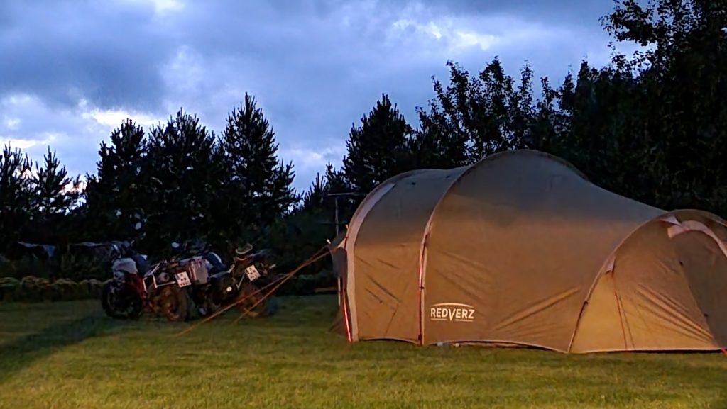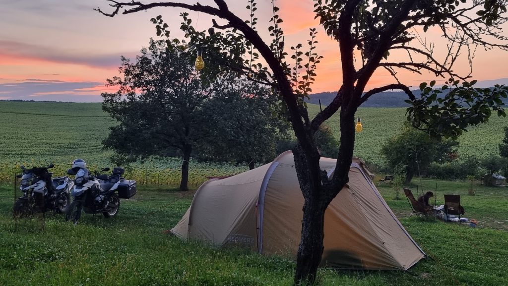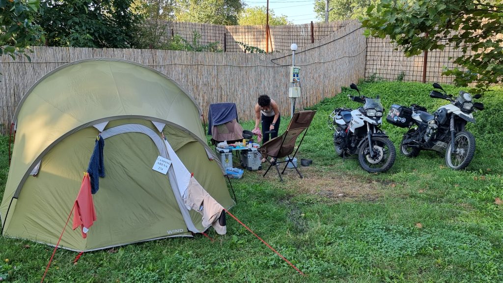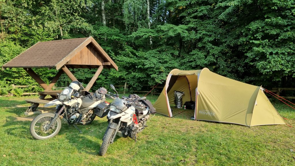 Der junge Bursche des Campingplatzes öffnete uns die Schranke und wirkte etwas eingeschnappt, als wir ihm absagen und umdrehen. Hmmm. 🤷♂️ Shit happens. Ist auch nicht schlimm, wenn zwei Motorradfahrer die angebotene „krumme“ Zeltwiese mit schlechten Plätzen nicht haben wollen… 🤷♂️