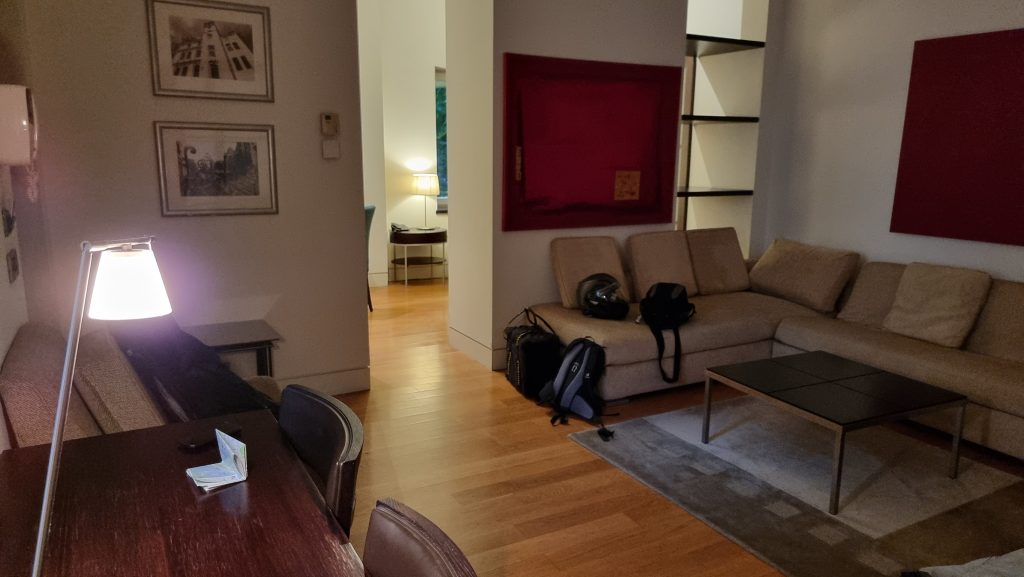 Etwas überrascht traten wir in unser Zuhause für eine Nacht ein: Das war kein Zimmer, nein das war ein Palast! 😲 Wow, eine komplette Suite mit Wohnraum, angeschlossenem Arbeitszimmer und Küchenzeile, sowie unser extra Schlafzimmer mit direktem Zugang in ein großzügiges Bad. OK, ist sicher nicht für uns gedacht gewesen, nehmen wir aber trotzdem… 🤷♂️🤗🤫