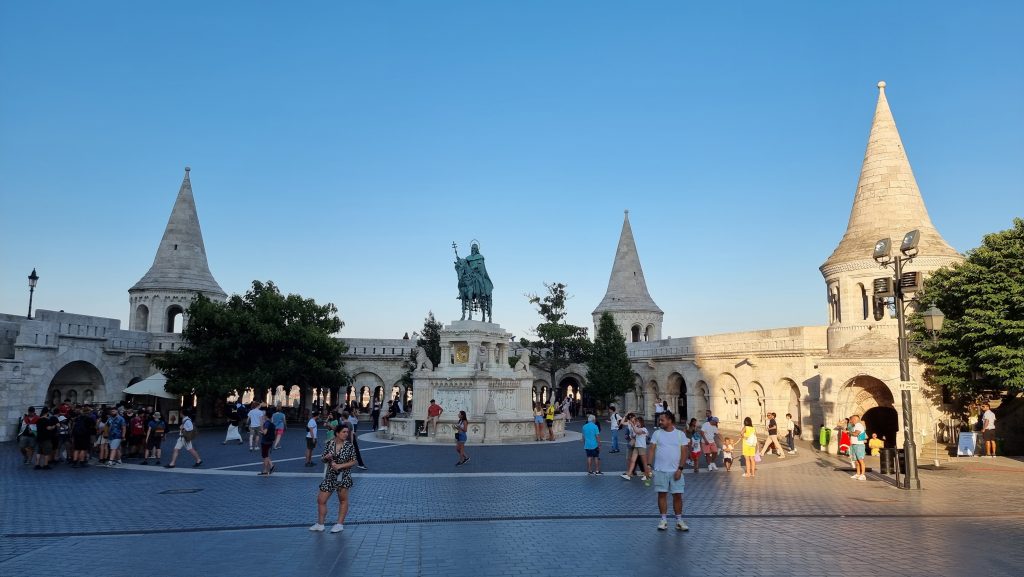 Jetzt hatten wir uns erst einmal eine Pause verdient, bestiegen den Hoppe-Hoppe-Reiter-Bus und fuhren auf die Buda-Seite zur Besichtigung. Ein paar Hundert Stufen ging es den Berg hinauf und uns bot sich zwischenzeitlich ein sehr schöner Ausblick auf die Pest-Seite an. Die Matthiaskirche mit dem Sankt Stephans-Denkmal und der Fischer-Bastei war dann unser Umkehrpunkt und wir bewegten uns wieder Richtung Donau hinunter.