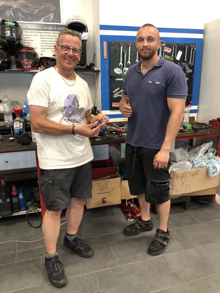 Ein freundlicher ungarischer Motorradfahrer bot uns seine Hilfe an und telefonierte ein paar Werkstätten in Budapest an. BMW schied, wie zu erwarten, aus. Eine kleine Werkstatt, die eher die Marke Suzuki betreut, bot uns an, sich dem Problem anzunehmen. So selbstverständlich, wie die Hilfe des ungarischen Bikers war, so unkompliziert war auch der weitere Ablauf mit der Werkstatt. Wir fuhren die letzten Kilometer bei sage und schreibe 38,5 Grad nach Budapest ein. Puhhh, ganz schön warm.