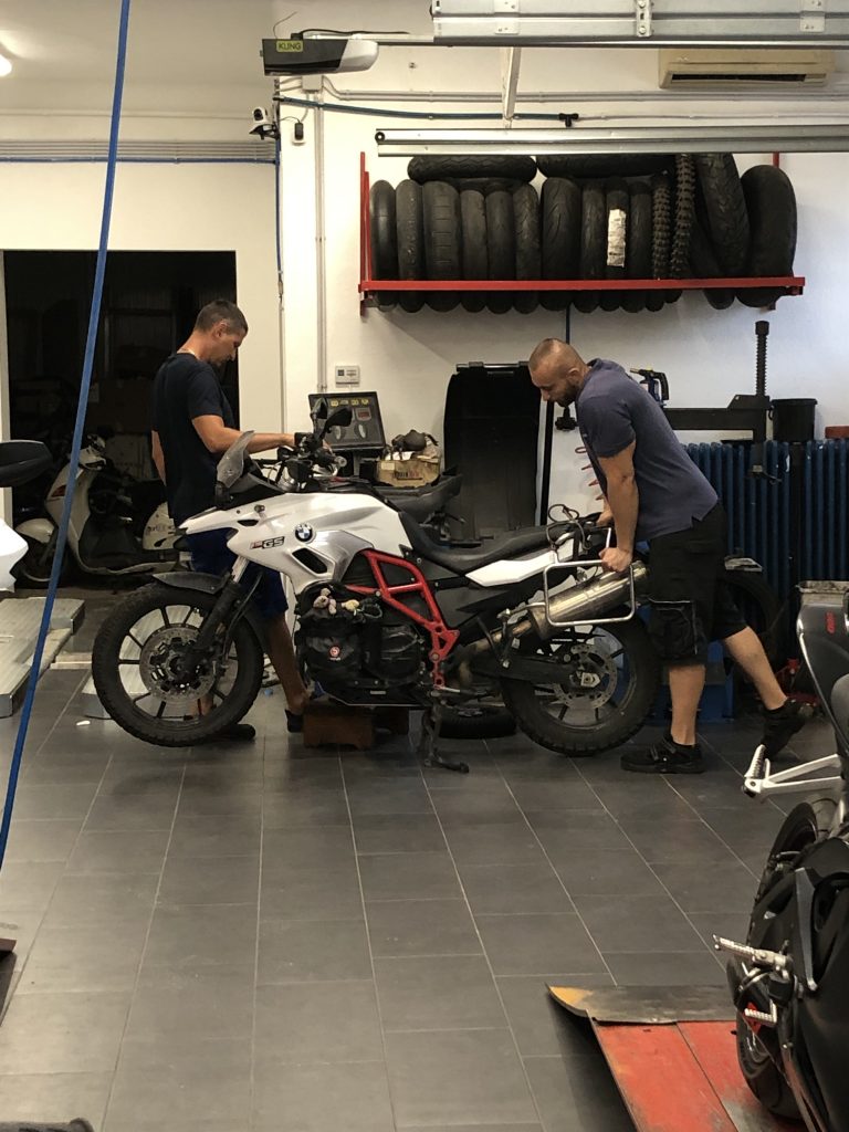 Nach Prüfung des Motorrads kurz vor Dienstschluss diagnostizierten die Mechaniker die defekten vorderen Radlager. Wir sollten die Maschine hierlassen oder am nächsten Tag vorbeibringen… Wow, wie unkompliziert…