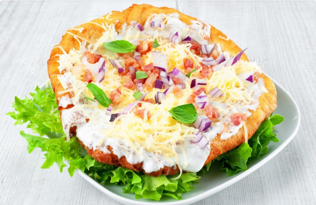 Nachdem wir die erste Runde mit dem Bus vollendet hatten, hoppten wir wieder off und suchten uns eine Langos-Kneipe. Langos = Pizza auf ungarisch, allerdings in einer Art „Ausgezogenen“-Teig.