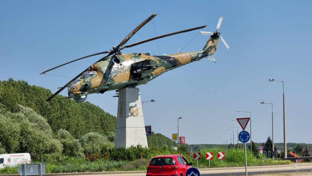 Auf diese Randbedingungen stieß auch noch die langweilige Einöde Ungarns bis zur Grenze. Halb benebelt von der Hitze mussten wir immer wieder Halt machen, um die Konzentration aufrecht zu erhalten. Eine klimatisierte Tankstelle und ein klimatisiertes Fast-Food-Lokal halfen dabei. Und manch eigentümlicher Kreisverkehr mit Flugobjekt…
