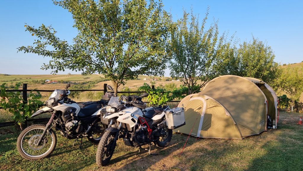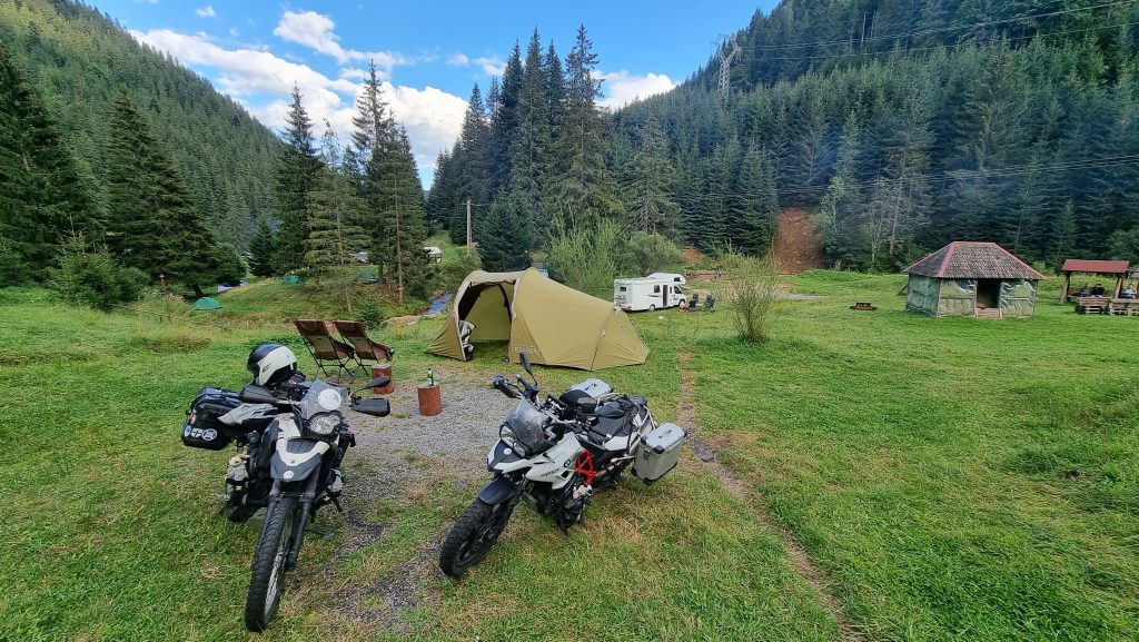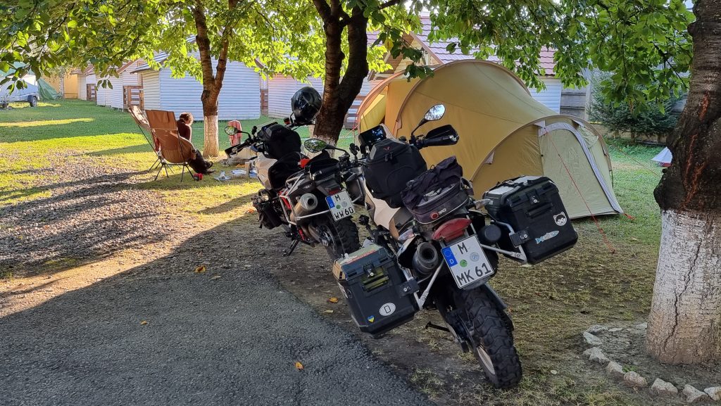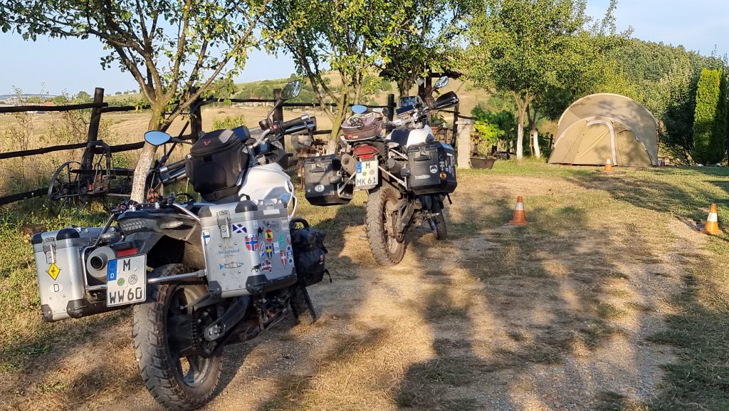 180 Kilometer später zogen wir in einem Campingplatz direkt am Anfang der Transalpina, einer der besten Motorradstrecken Rumäniens, ein. Nudeln mit Speiseresten, die nach 3 Tagen Hitze im Koffer nicht mehr so wohlgeformt aussahen, stand auf der Abendkarte. Hat trotzdem sehr gut geschmeckt!