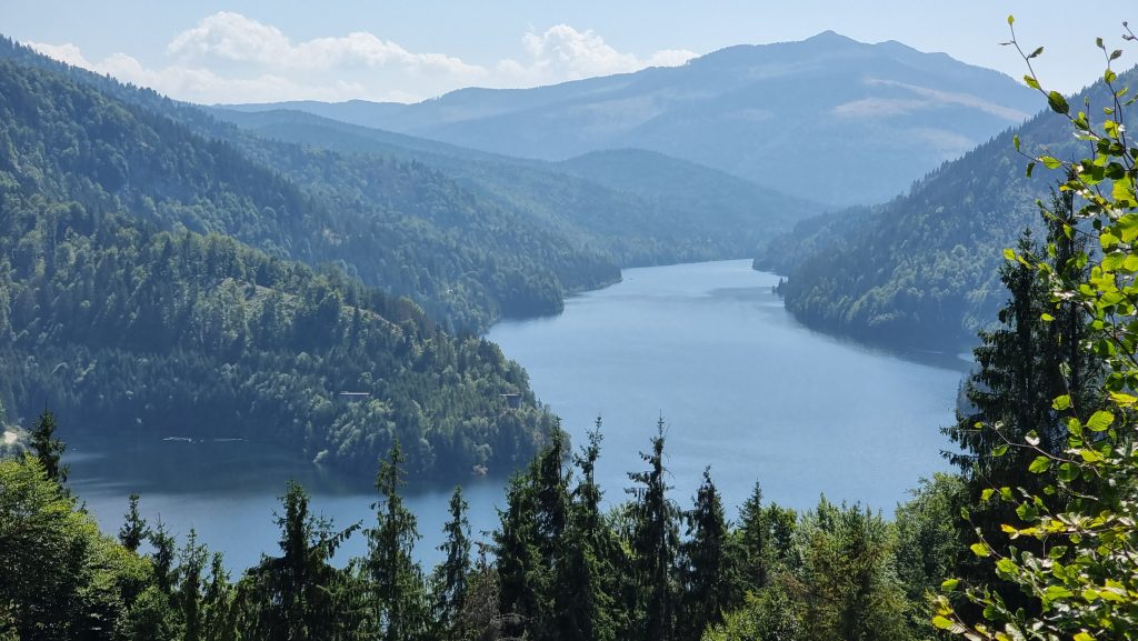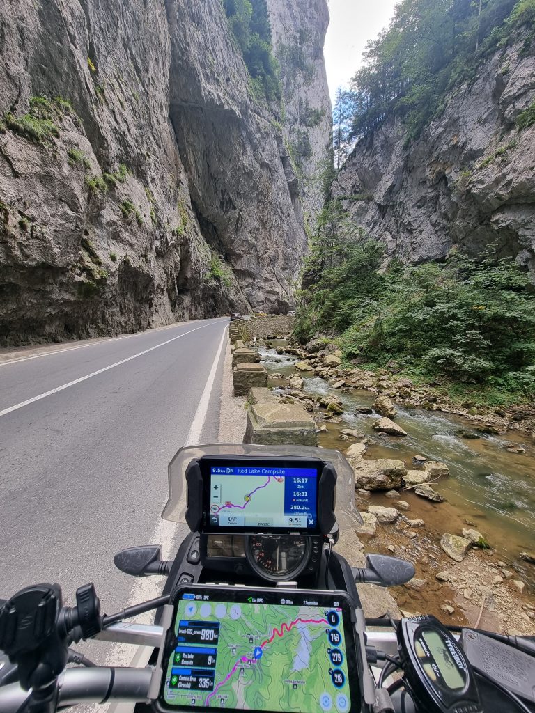 Das Highlight sollte der Lacu Rosu mit einer sehenswerten Schlucht werden. Um dorthin zu kommen hatten wir eine Schleife ausgearbeitet: Die 15er Landstraße von Toplita an den Bicaz-See. Genial. Trotz Samstag, wenige Fahrzeuge und beste Bedingungen. Rumänien schnellt mit solchen Straßen ganz schnell in die Top Five von Europa!