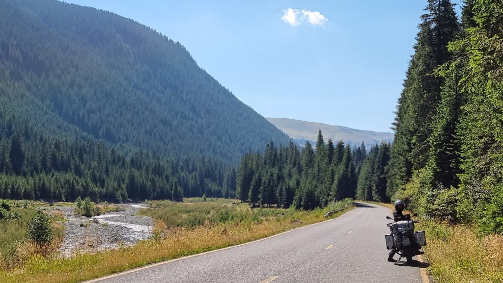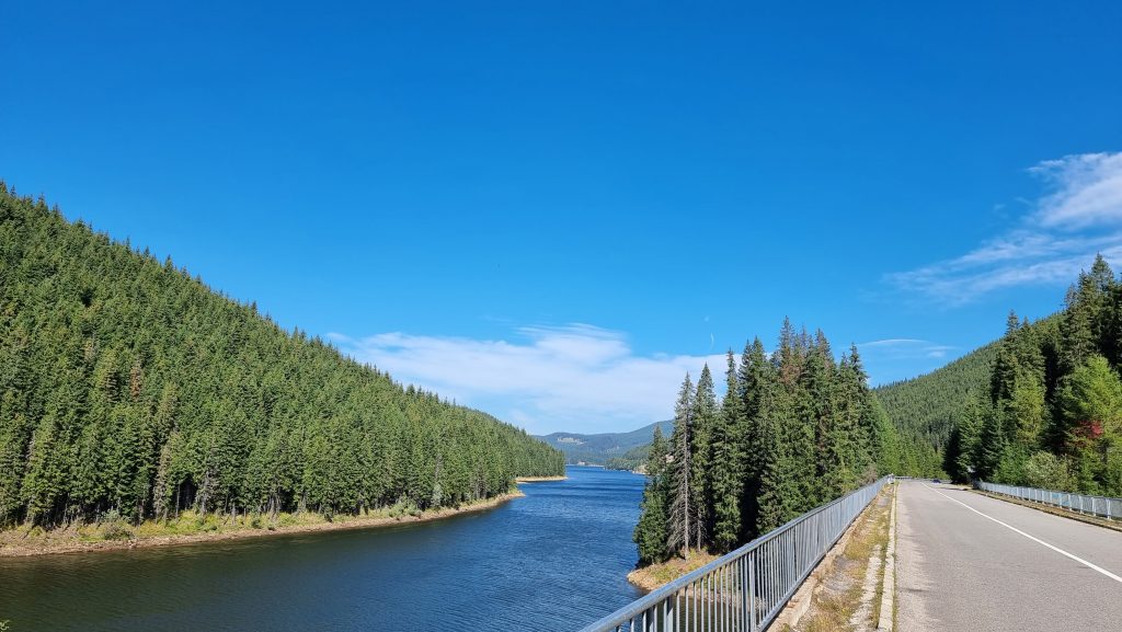 Wir verabschiedeten uns und unsere unbefestigte Strecke führte uns gleich in der Früh an einem wunderbaren Bachlauf entlang. Dichte Mischwälder, links und rechts des Bachlaufs Grasebenen, die zum Picknick und auch Zelt aufbauen verleiteten. Kurze Zeit später Ausblicke auf einen Stausee und kurvige Straßen wie im Schwarzwald. Wunderbares Rumänien! 😍