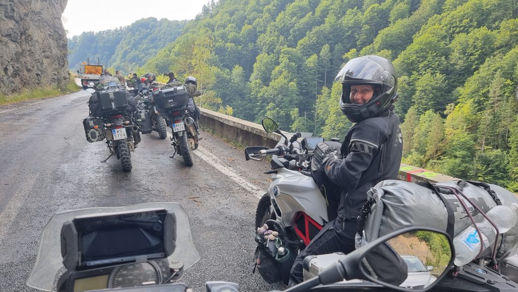 Leider war dann doch der rechte Koffer etwas verzogen. Da muss ich hier schon mal zum Besten geben, dass ein Touratech-Koffer in Punkto Qualität dem Hepco-Becker-Koffer deutlich überlegen ist… Auf jeden Fall sind wir dann doch noch mit einer Stunde Verspätung losgekommen, um die legendäre rumänische Passstraße Transfagarasan zu erklimmen.