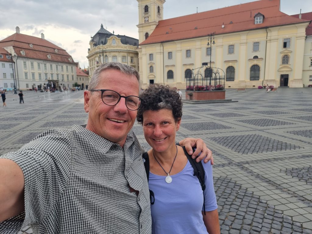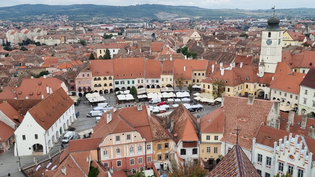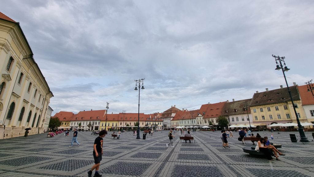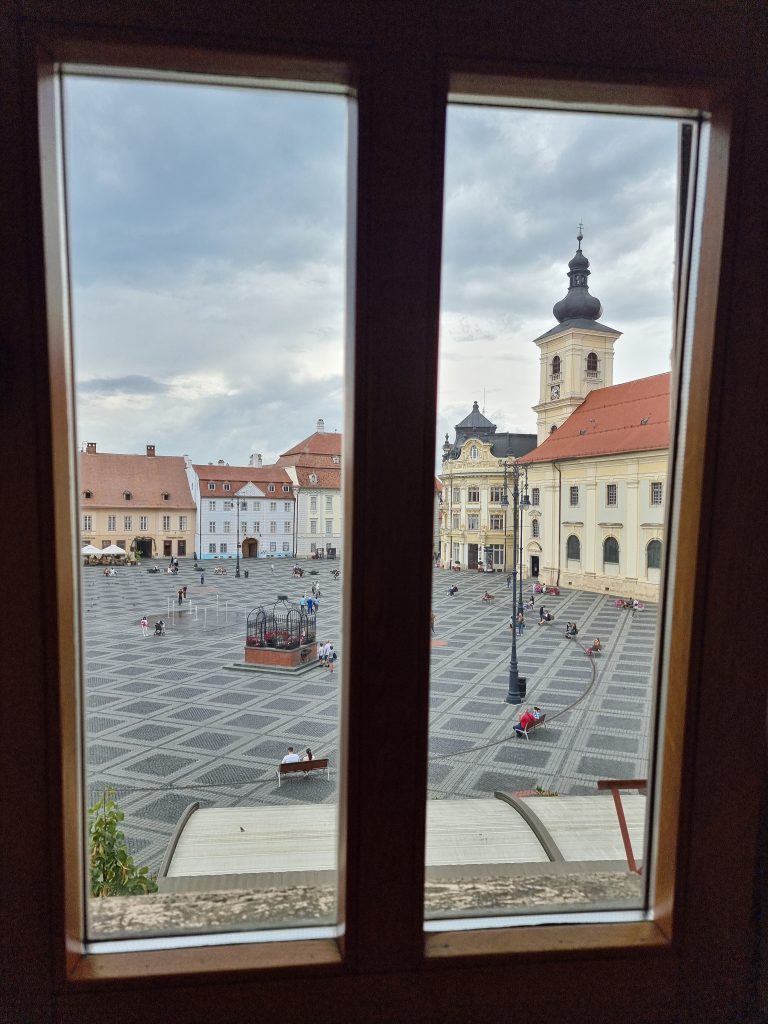 Die letzten Kilometer nach Hermannstadt hinein waren wir zum Glück wieder auf einer Nebenstrecke unterwegs. Auf der Hauptroute war es weder schön, noch entspannt zu fahren. In unserer Unterkunft angekommen (es war ein uralter, denkmalgeschützter Gasthof) bot sich ein spannender Blick auf den „Ring“, den Hauptplatz der Stadt.