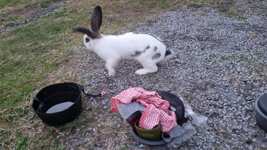 Übrigens: der zahme Haushase auf den Fotos wanderte weder auf den Grill, noch in den Zylinder. Er war einfach Chef des Campingplatzes!