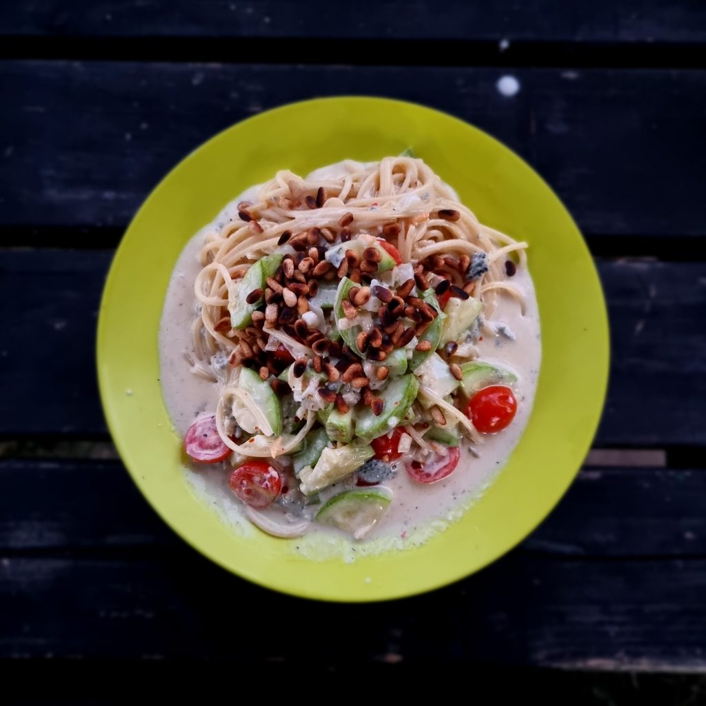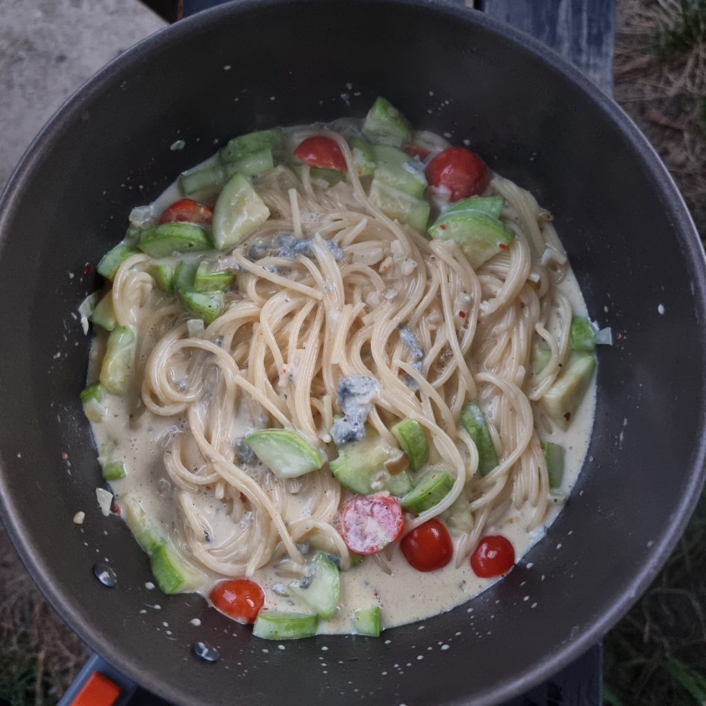 Heute gab es dann das erste Mal Spaghetti Gorgonzola auf dem Campingkocher… Sehr gut! Müssen wir das jetzt in unseren Koch-Blog schieben? Ok. Wird dann demnächst passieren. 😉
