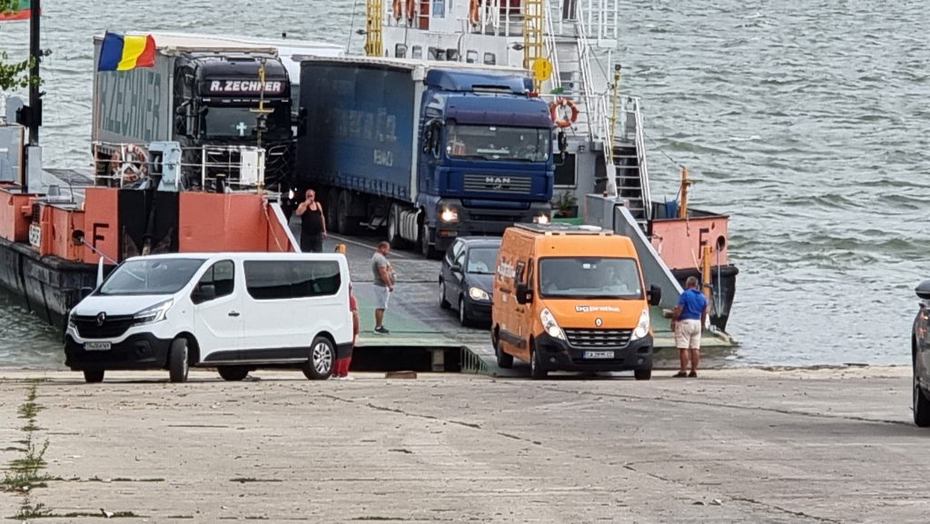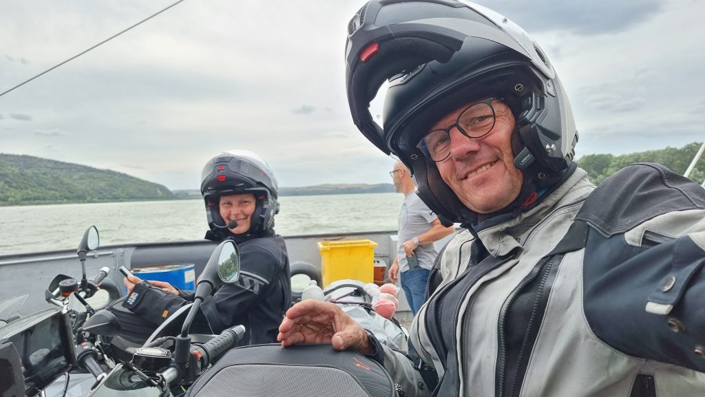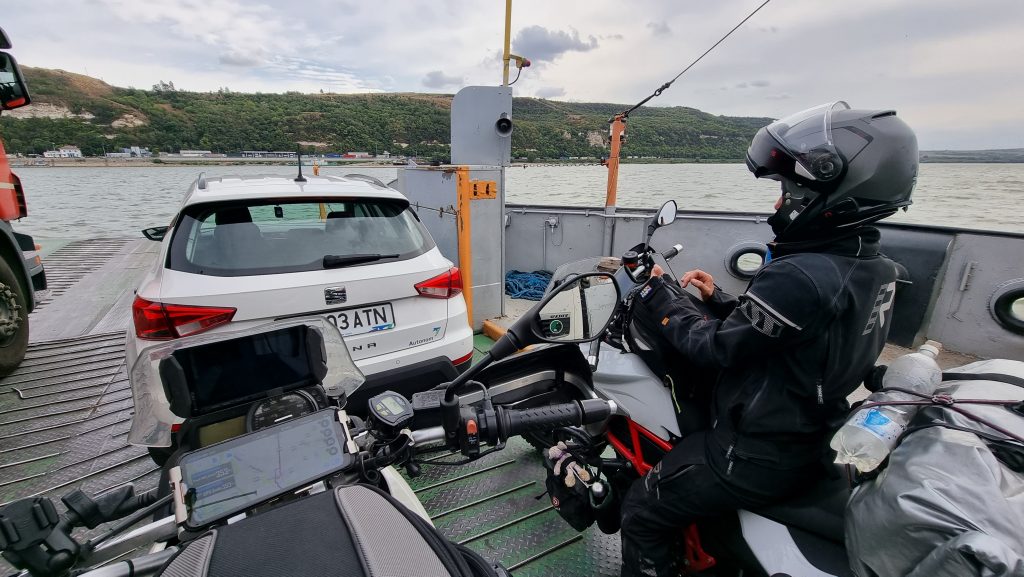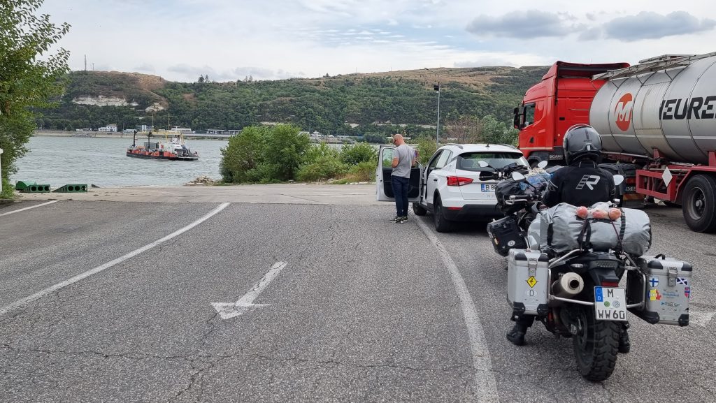 Die Fahrt zur bulgarischen Grenze war erst einmal sehr kräfteraubend, da sie eintönig und anstrengend war. 300 Kilometer, hauptsächlich geradeaus, über ödes Ackerland. 🥱 Nur die 10-minütige Fährfahrt über die Donau auf einem alten Fährdampfer mit der Passkontrolle hat uns den Tag gerettet. 😉😅