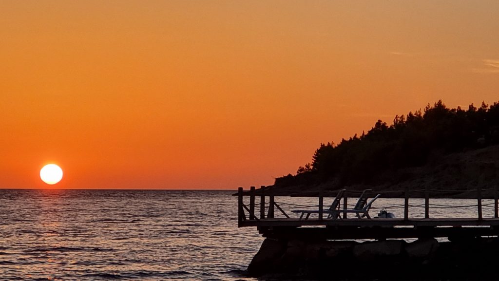 Am frühen Abend sind wir dann noch zum Einkaufen in das kleine Städtchen Bol gefahren und haben dort ein frühes Abendessen eingenommen. Cevapcici und eine Pizza mit Meeresfrüchten im Sharing-Modus. Die Pizza hat eindeutig das Duell gewonnen. Die Cevapcici waren einmal Pflichtprogramm für Kroatien. Das reichte uns dann auch… 😉