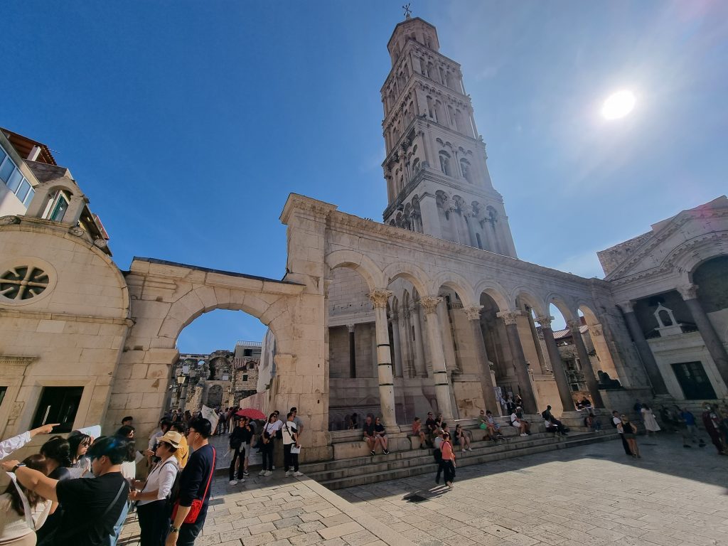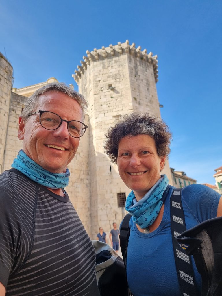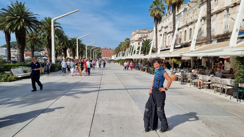 Nach 50 Minuten dasselbe Spiel: Wir waren bei den ersten Fahrzeugen dabei, die der Schiffsbauch wieder ausspuckte. Direkt in den Hafen von Split, nahe des historischen Zentrums. Eine kleine Runde noch und schon hatten wir an präsenter Stelle einen Motorradstellplatz, von dem wir dann zu Fuß weiter in die Stadt gelaufen sind.