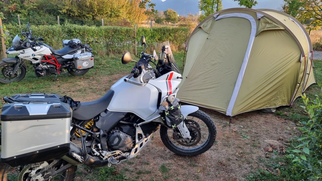 Zwei Motorräder, zwei Personen, ein Zelt, knapp 40 Euro. Platz wird zugewiesen, keine Diskussion. Friss oder stirb. Sie hat die ganze Saison gearbeitet und hat jetzt anderes vor, als freundlich zu sein. Du mich auch! (wieder sorry). Der nächste Platz war klein und nett, aber ohne jegliche Aussicht.