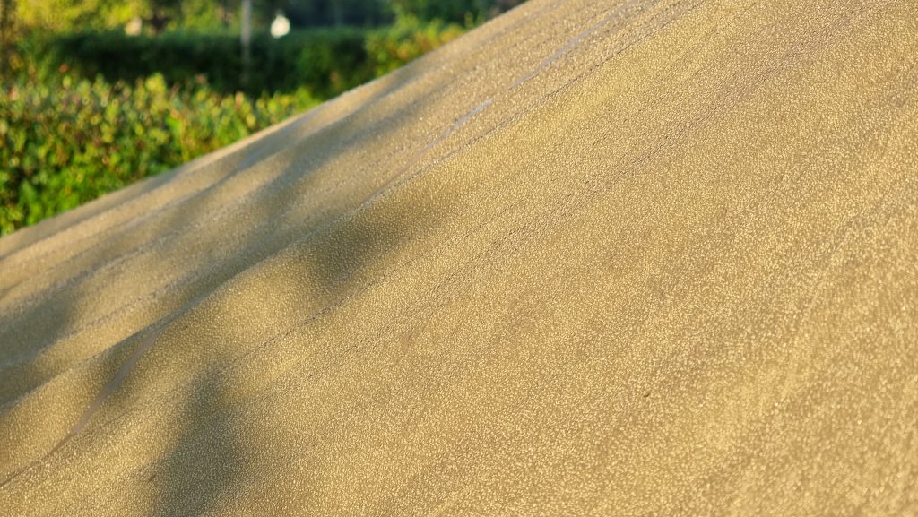 Zur Trockenbeschleunigung drehten wir das Zelt noch einmal um 180 Grad, um die Schattenseite ebenfalls in die Sonne zu schieben. Und so haben wir es doch geschafft, bis um 11 Uhr abfahrtbereit zu sein. 💪😀