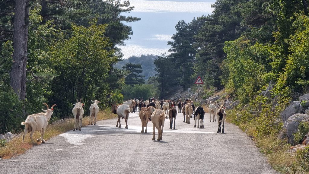 Ein kurzer Picknick-Stop bei frischem Wind und wenig Sonne auf einer Hochebene, sowie eine Herde Ziegen, die unserer Strecke folgten, waren eine willkommene Abwechslung.