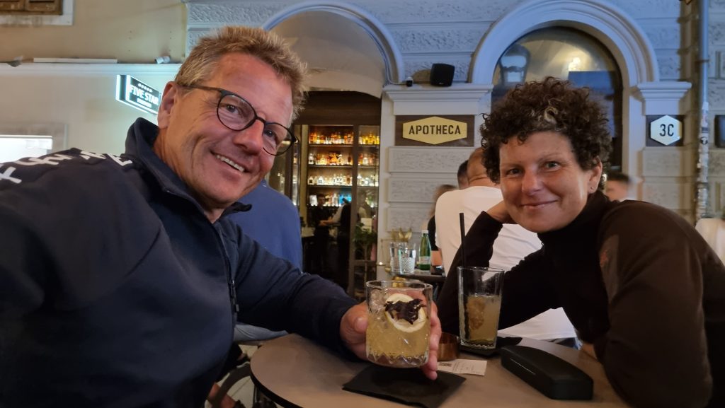 Trotzdem mussten wir immer wieder lachen: Während sich die Stadtjugend und unsere Altersklasse für den Abend aufgebrezelt hatten, saßen wir in unserer seit einem halben Jahr bewährten „Ausgeh“-Klamotte (Jogginghose mit Motorrad-Unterziehjacke) wie zwei Schlümpfe am Tresen und erfreuten uns in dieser Szene-Kneipe an unseren Cocktails… 🤣